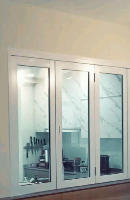 Collapsible window panels. Commonly used to segregate half wall rooms while being able to see-through